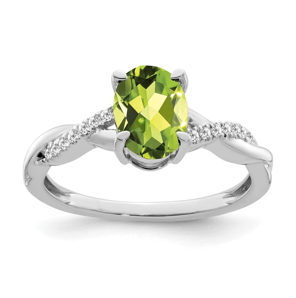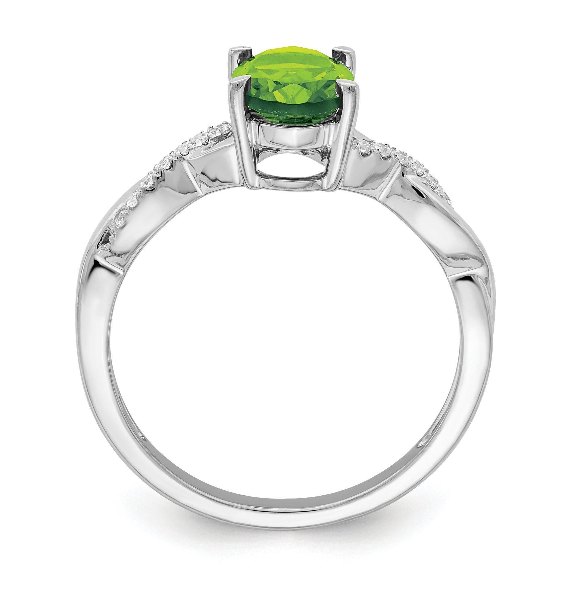 14k White Gold Oval Peridot and Diamond Ring, Size 6