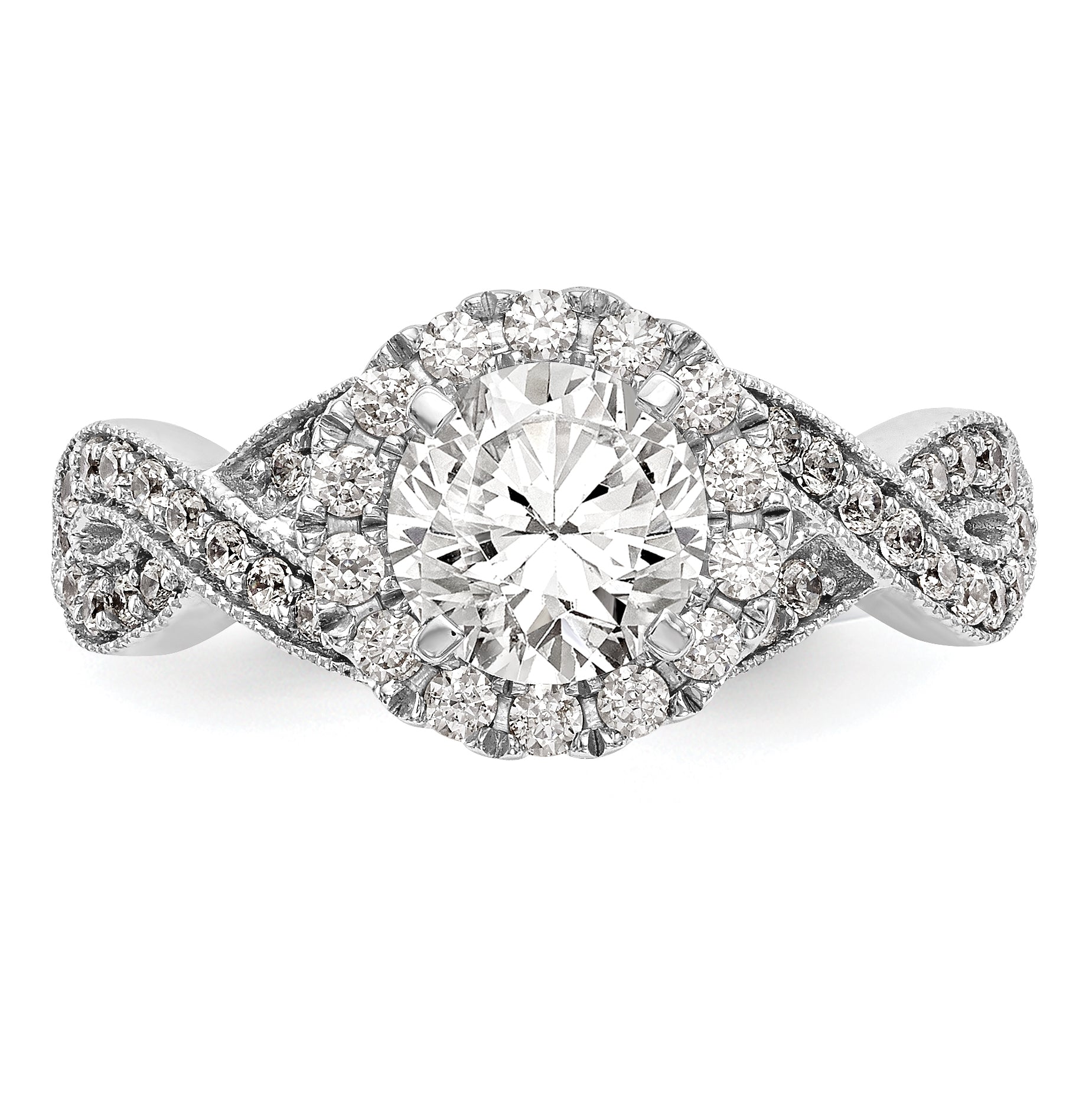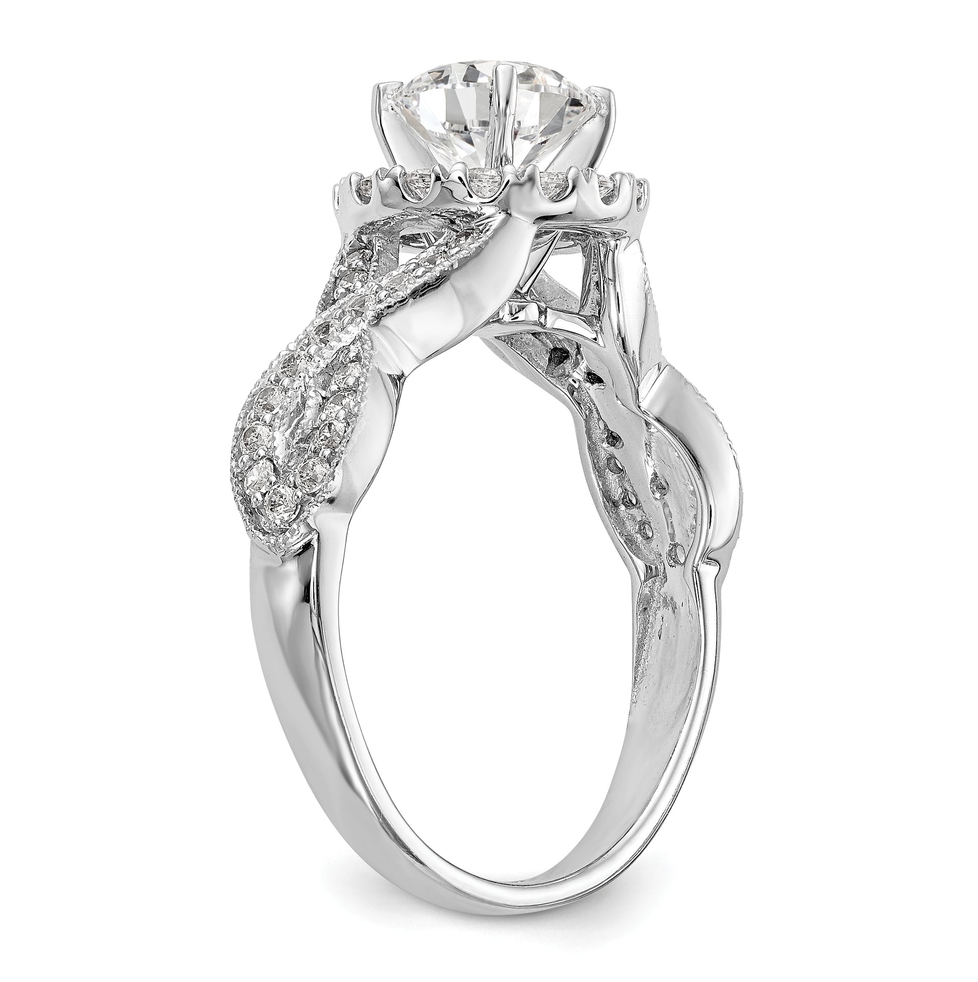 14K White Gold Peg Set Diamond Semi-Mount Halo Engagement Ring