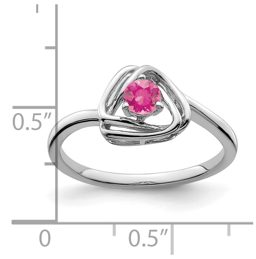 14k White Gold Pink Tourmaline Triangle Ring, Size 6