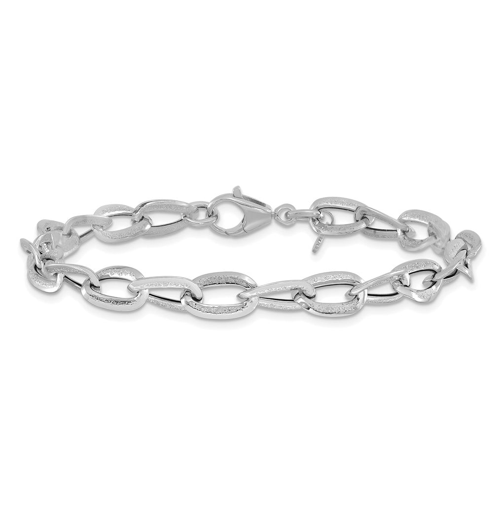 14K White Gold Polished and Satin Fancy Link Bracelet