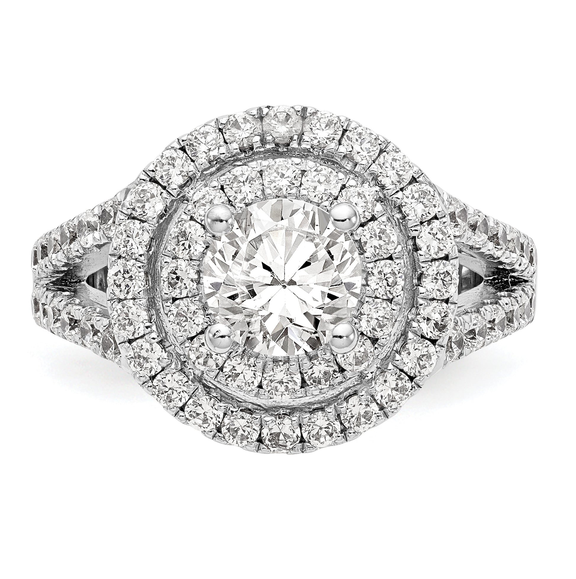 14K White Gold Round Diamond Semi-Mount Double Halo Engagement Ring