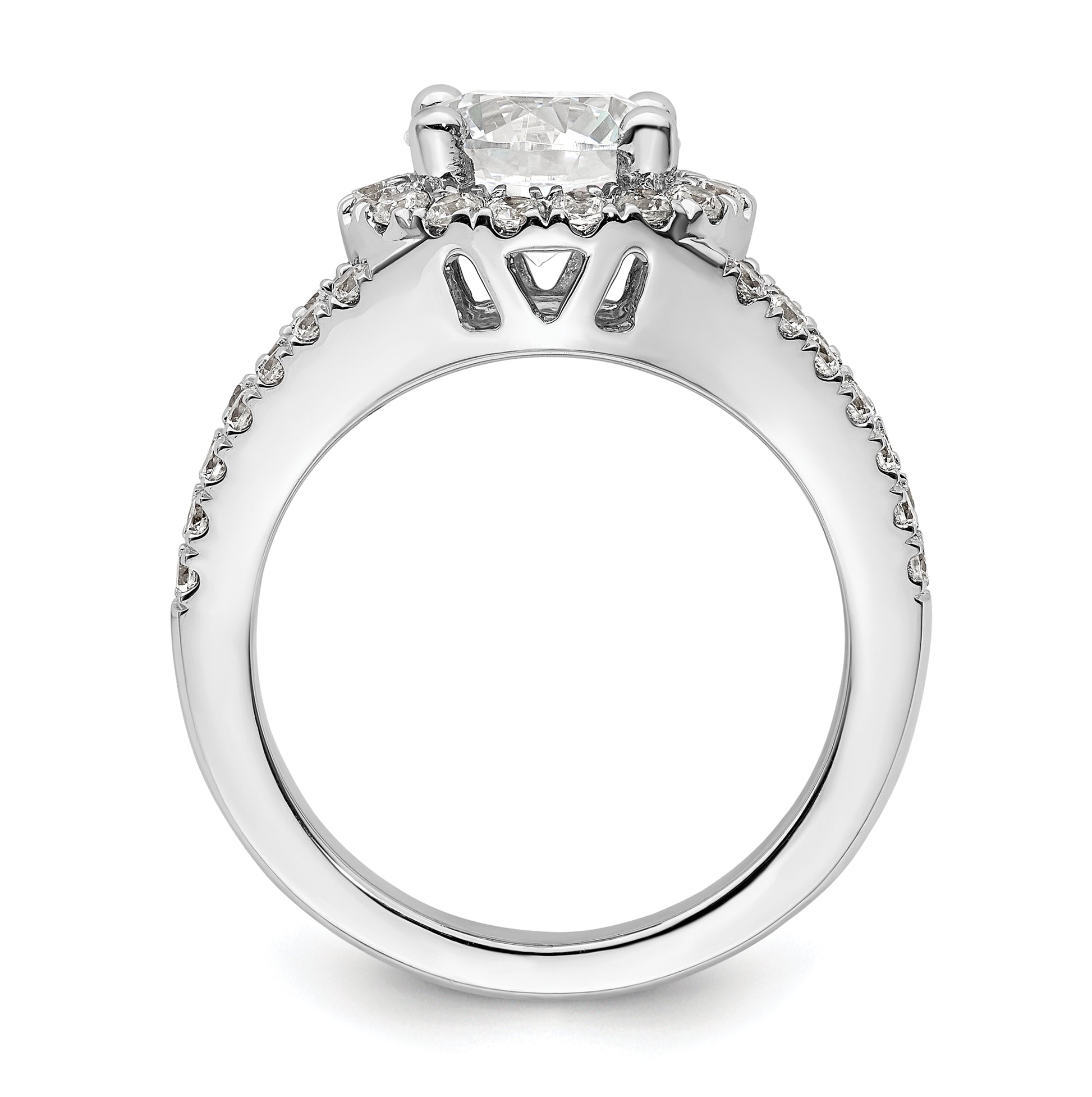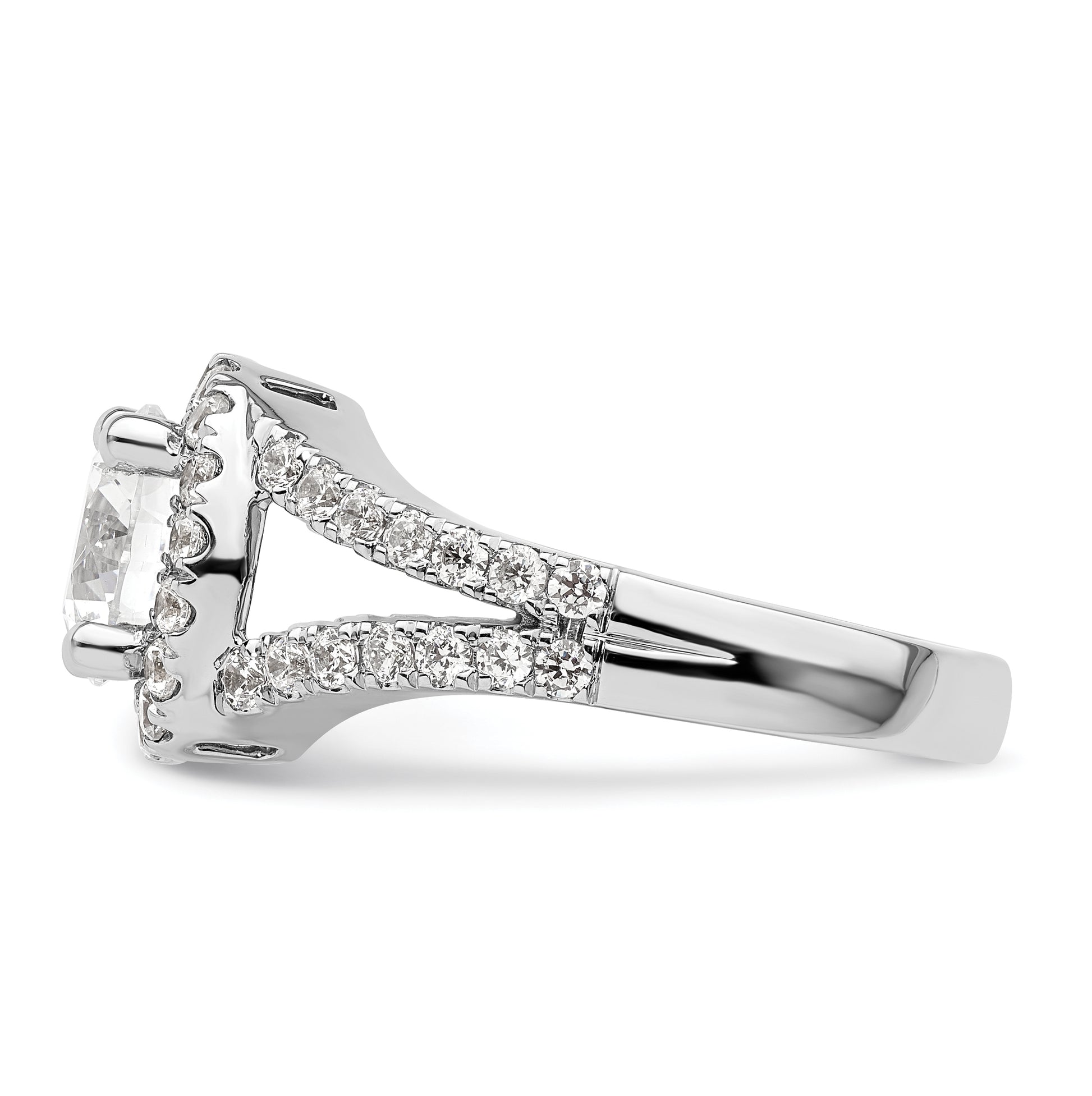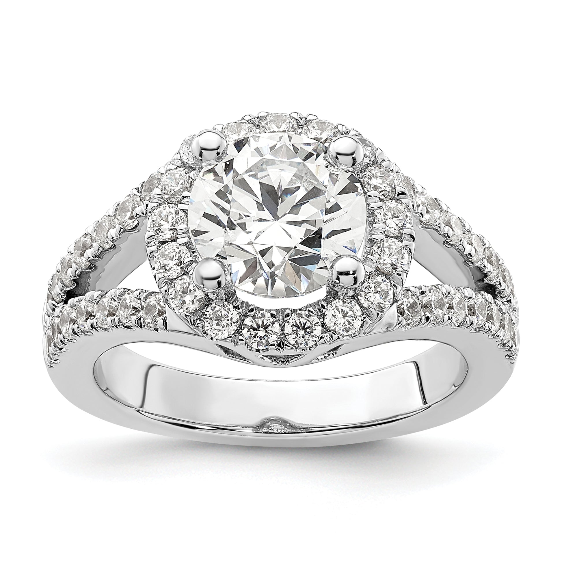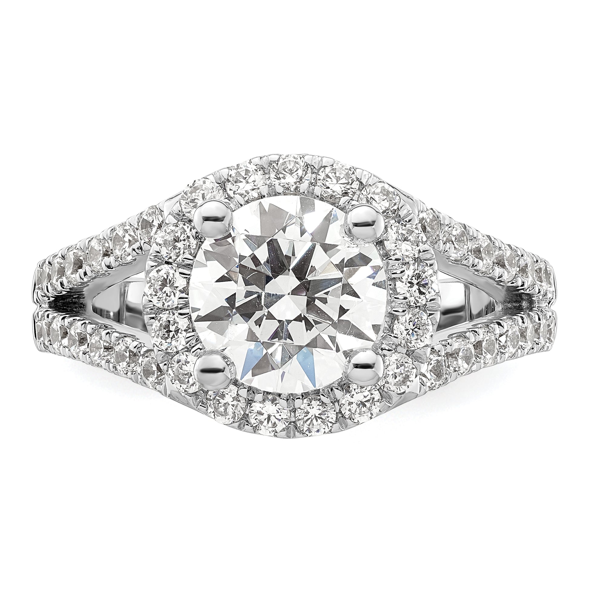 14K White Gold Round Diamond Semi-Mount Halo Engagement Ring, 4 to 3 mm (tapered)