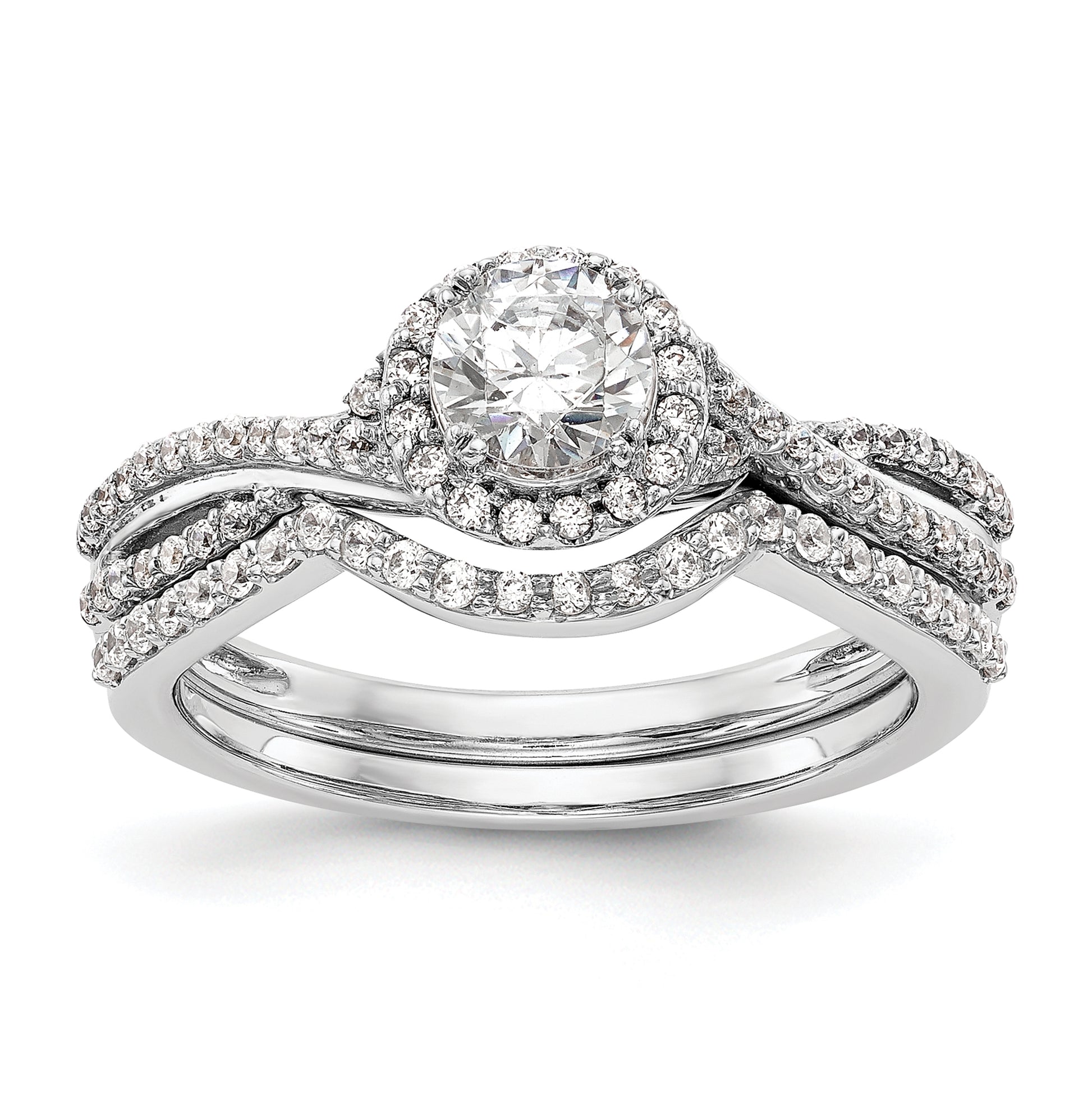 14K White Gold Round Diamond Semi-Mount Halo Engagement Ring,