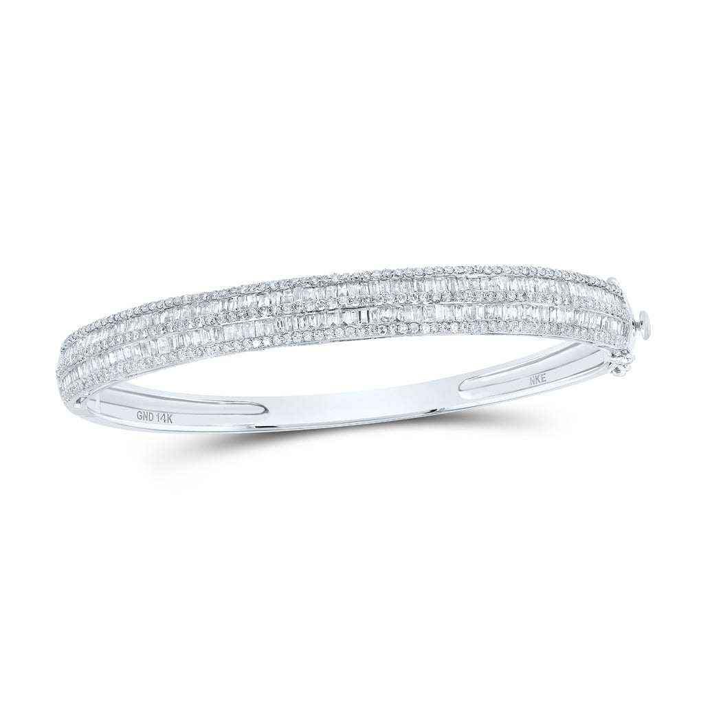 14K White Gold Womens Baguette Diamond Bangle Bracelet 3-5/8 Cttw