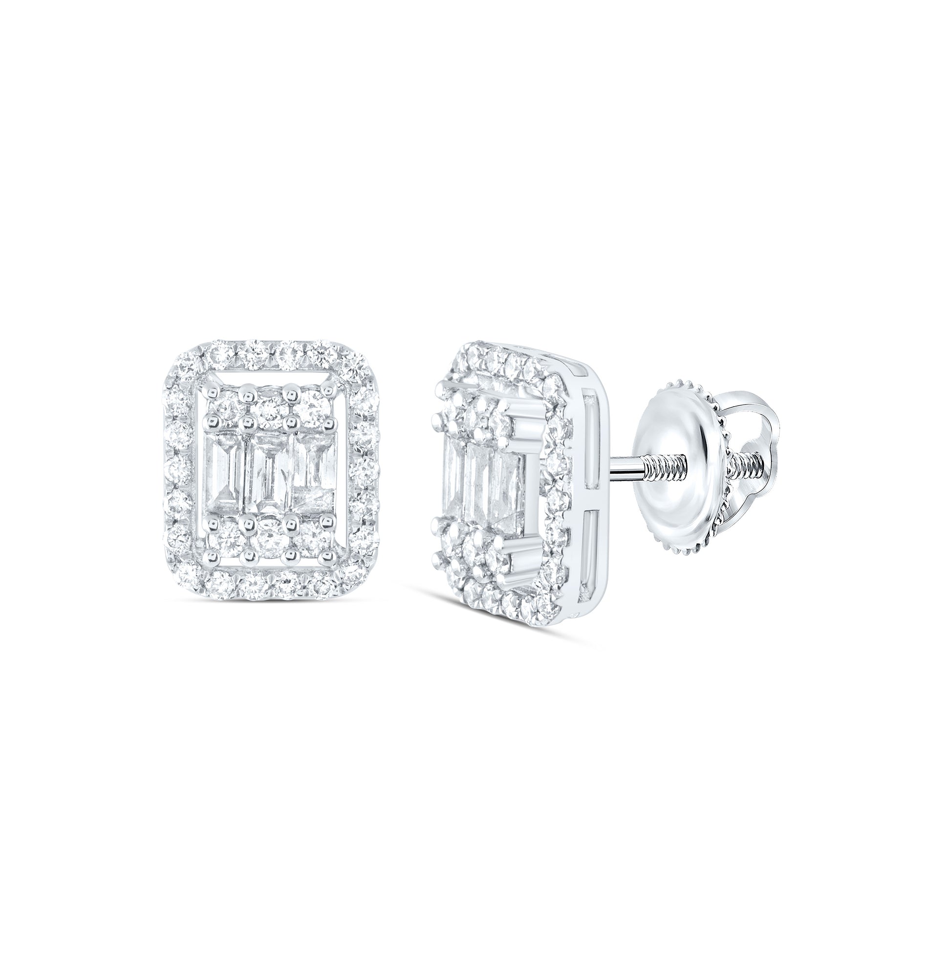 14K White Gold Womens Baguette Diamond Cluster Earrings 1/2ctw