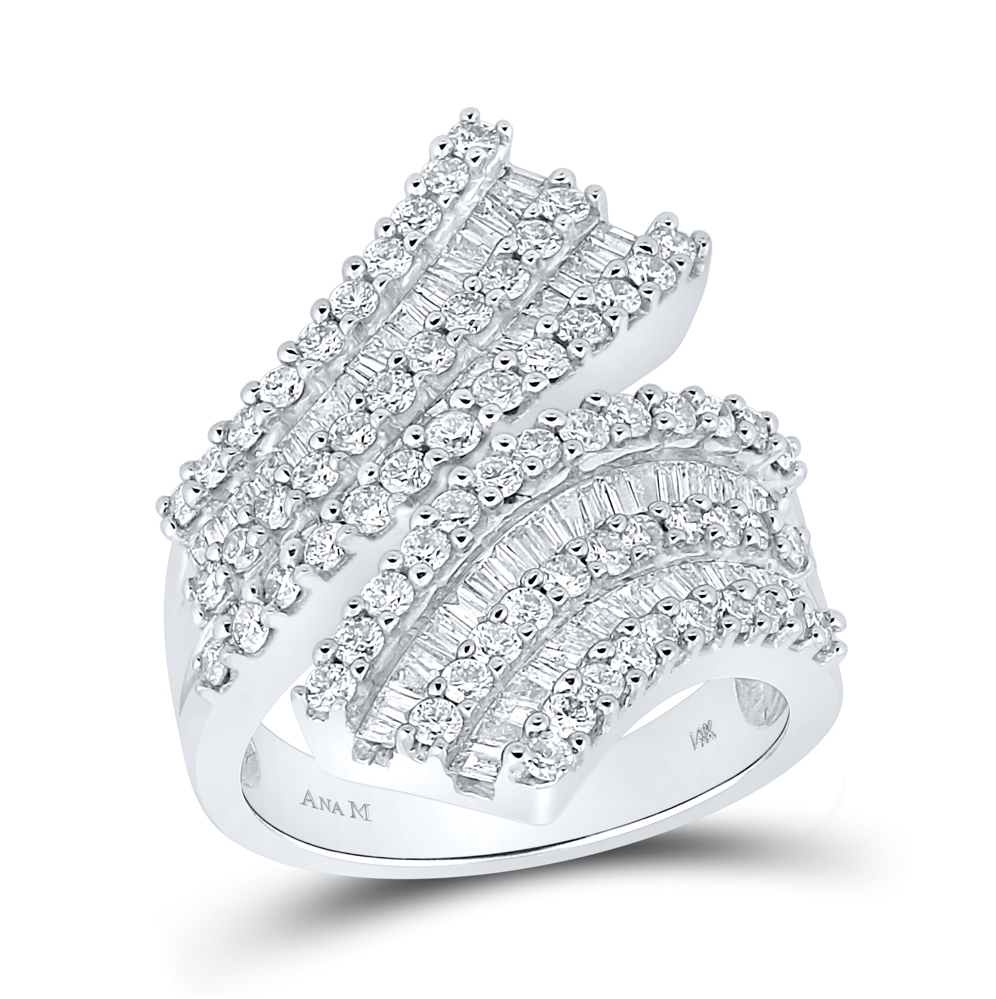 14K White Gold Womens Round Diamond Bypass Cocktail Ring 2 Cttw, Womens Size: 5-10