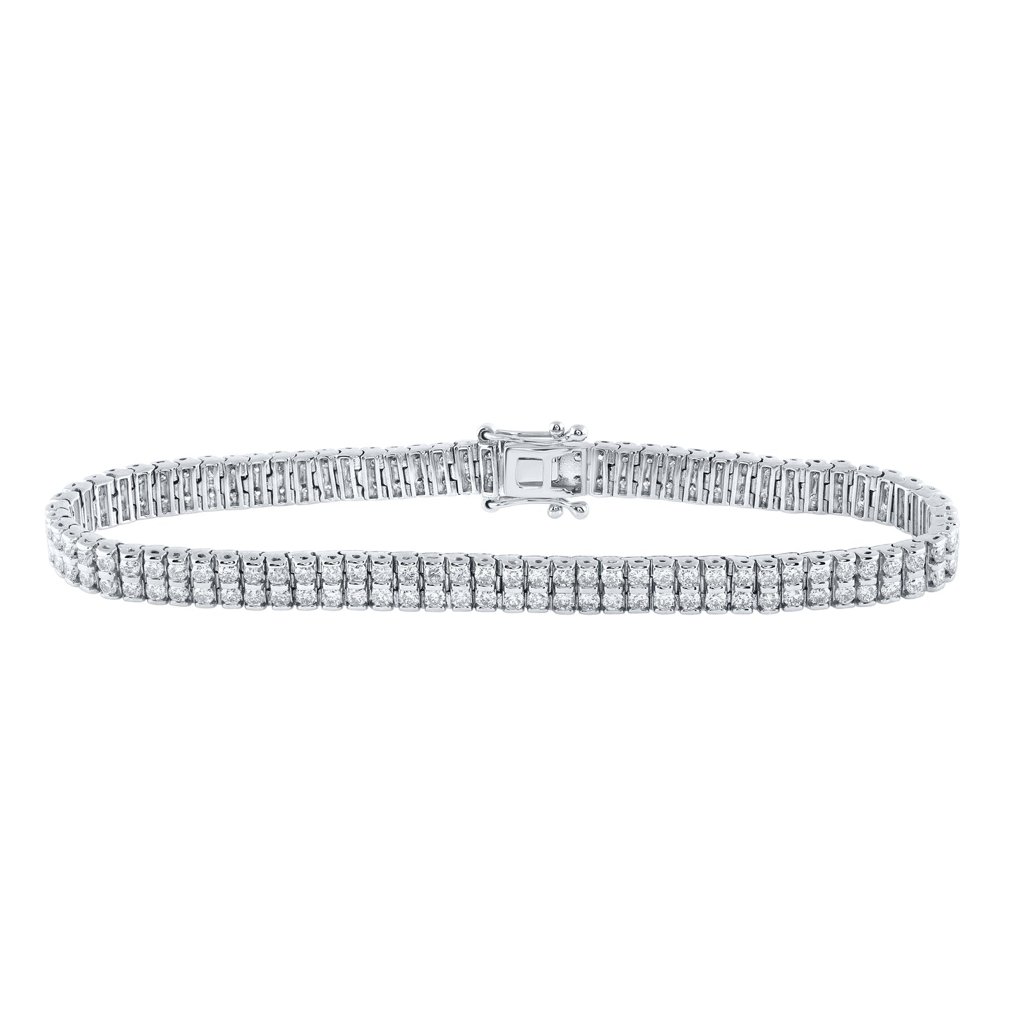 14K White Gold Womens Round Diamond Double Row Tennis Bracelet 4-1/5 Cttw