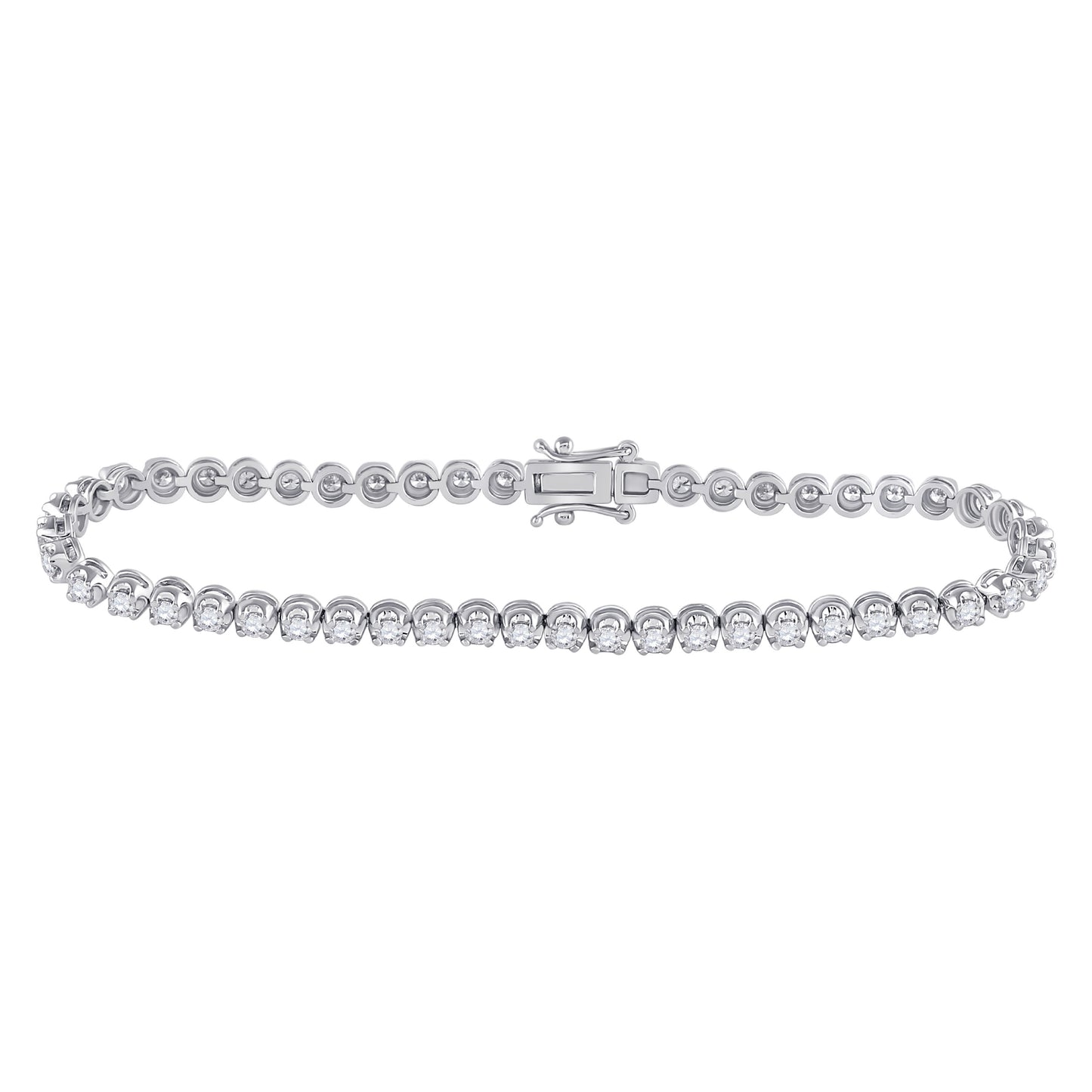 14K White Gold Womens Round Diamond Timeless Tennis Bracelet 2 Cttw