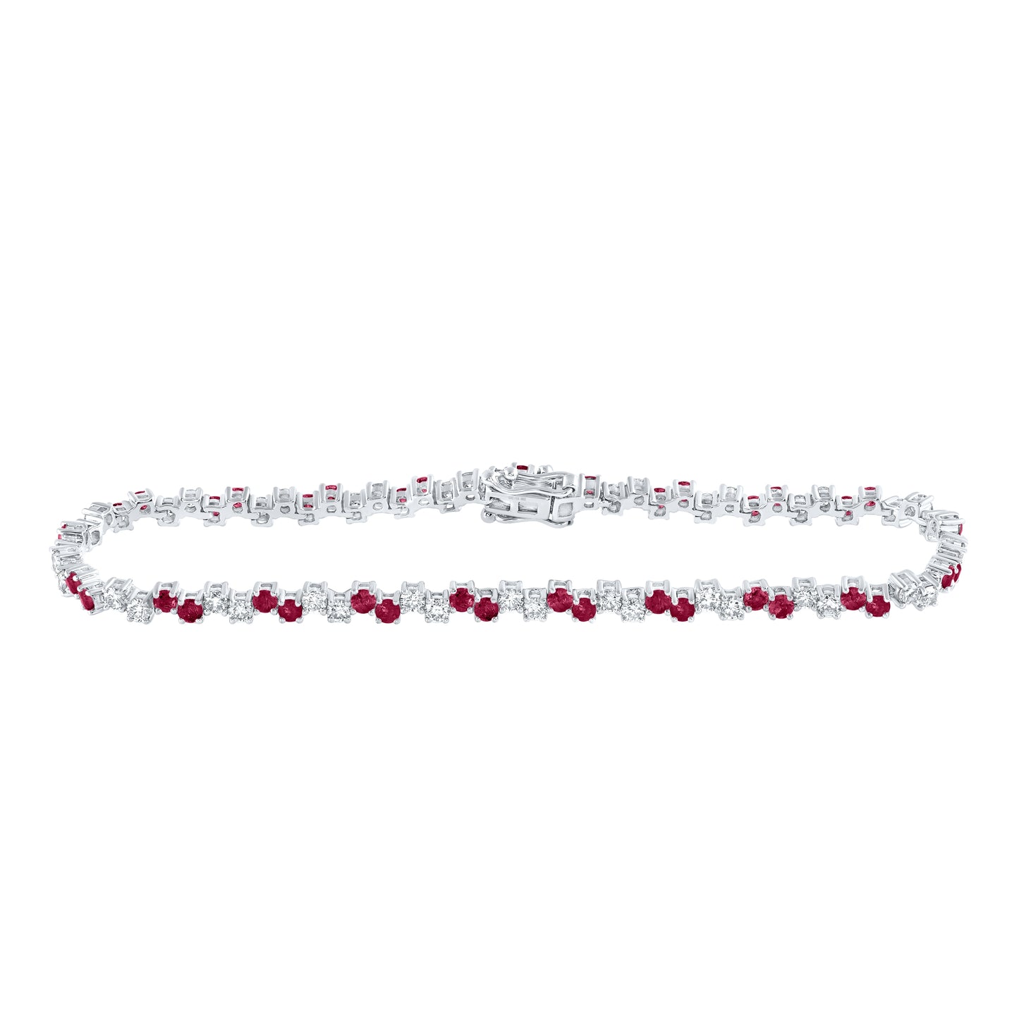 14K White Gold Womens Round Ruby Diamond Tennis Bracelet 3-3/4 Cttw