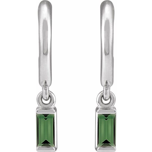 14K White Or Yellow Gold Straight Baguette 17.6 Mm 4.6 Mm 4 X 2 Mm Pair Friction Back Polished Natural Green Tourmaline Dangle Hoop Earrings
