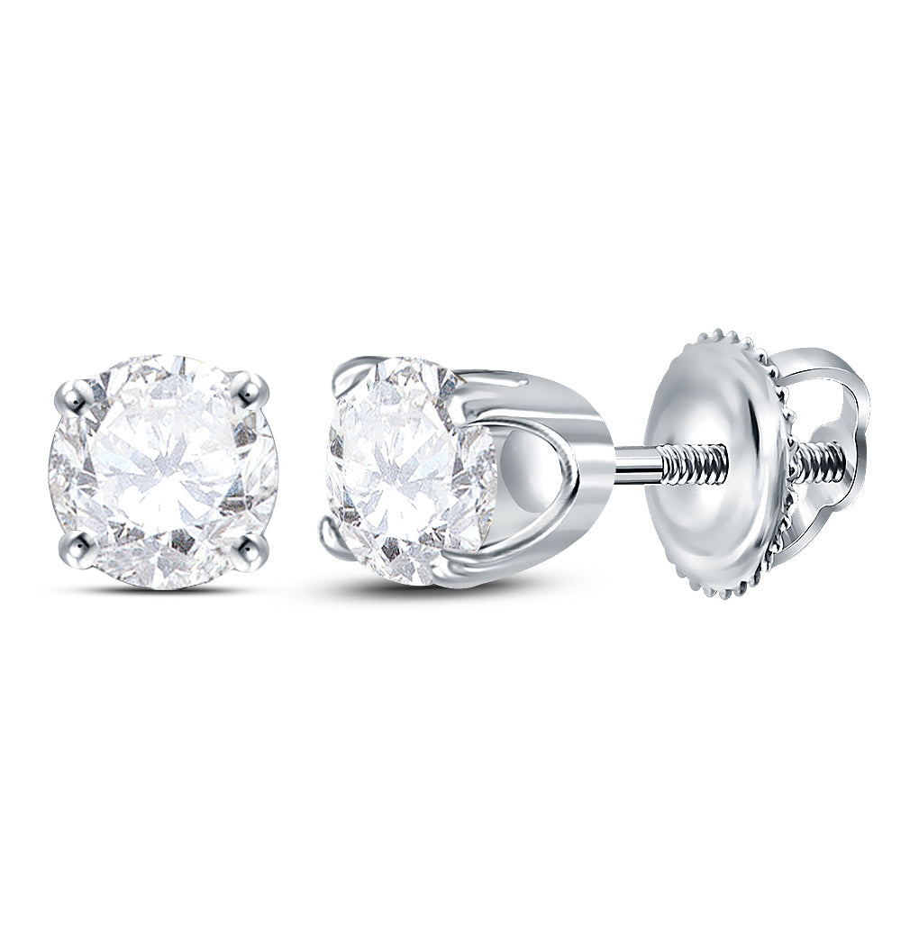 14K White Or Yellow Gold Womens Round Diamond Solitaire Earrings