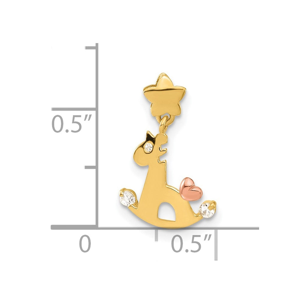 14k Yellow and Rose Gold Cubic Zirconia Children's Rocking Horse Pendant