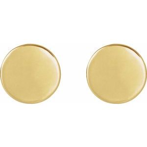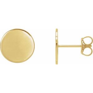 14K Yellow Gold 10 X 10 Mm Pair Friction Backs Polished Engravable Disc Earrings