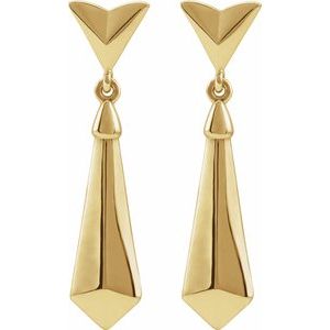 14K Yellow Gold 27.2 X 6.3 Mm Pair Friction Backs Included Polished Geometric Dangle Earring With Backs