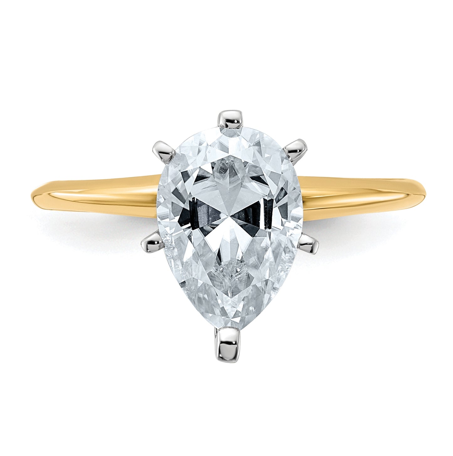 14K Yellow Gold 2ct. D E F Pure Light Pear Moissanite Solitaire Ring, Size 5