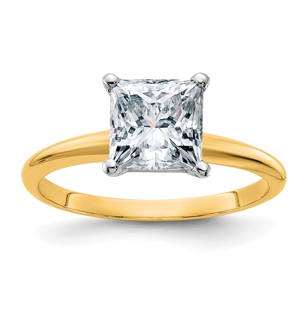 14K Yellow Gold 2ct. D E F Pure Light Princess Moissanite Solitaire Ring, Size 5
