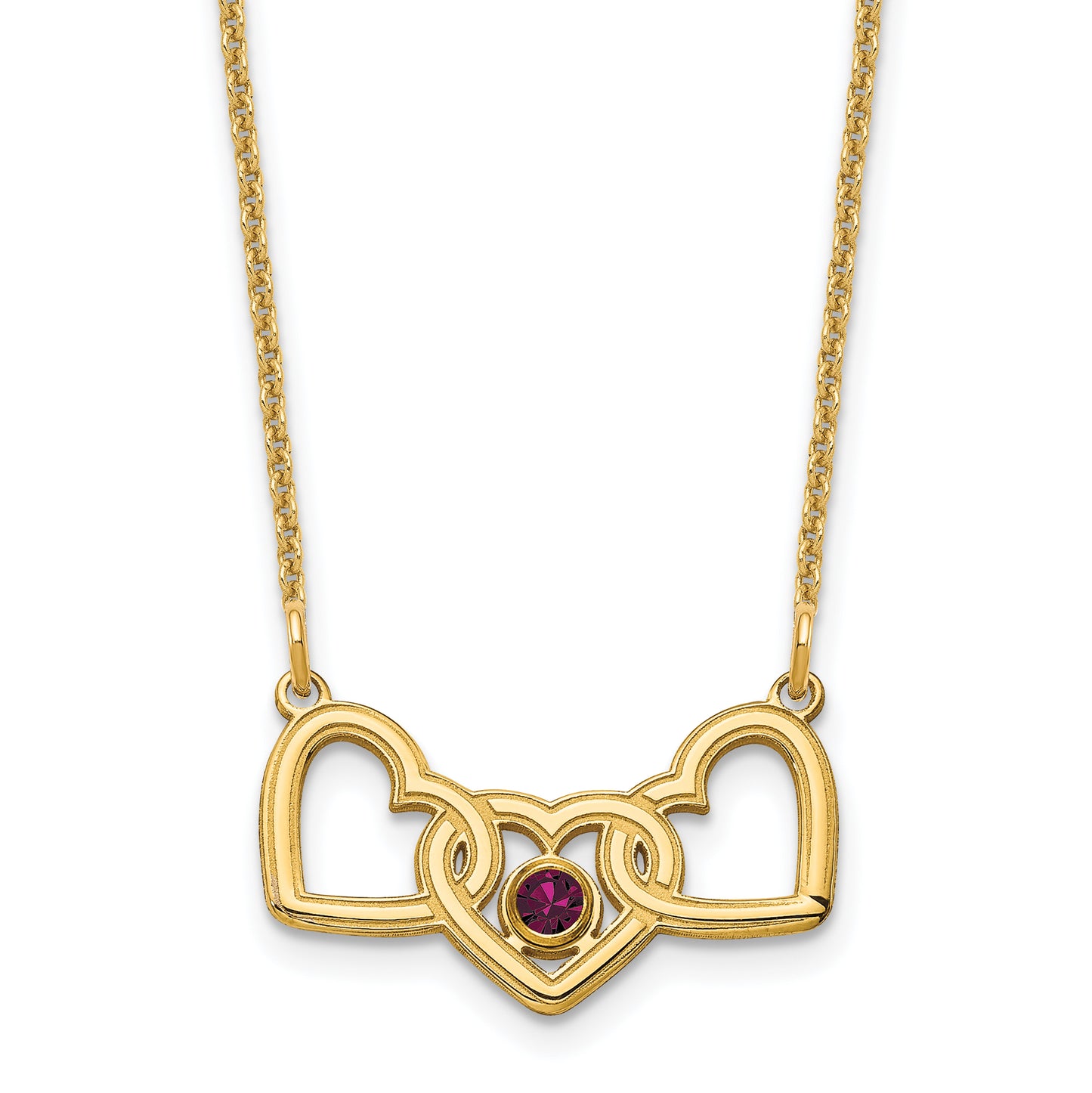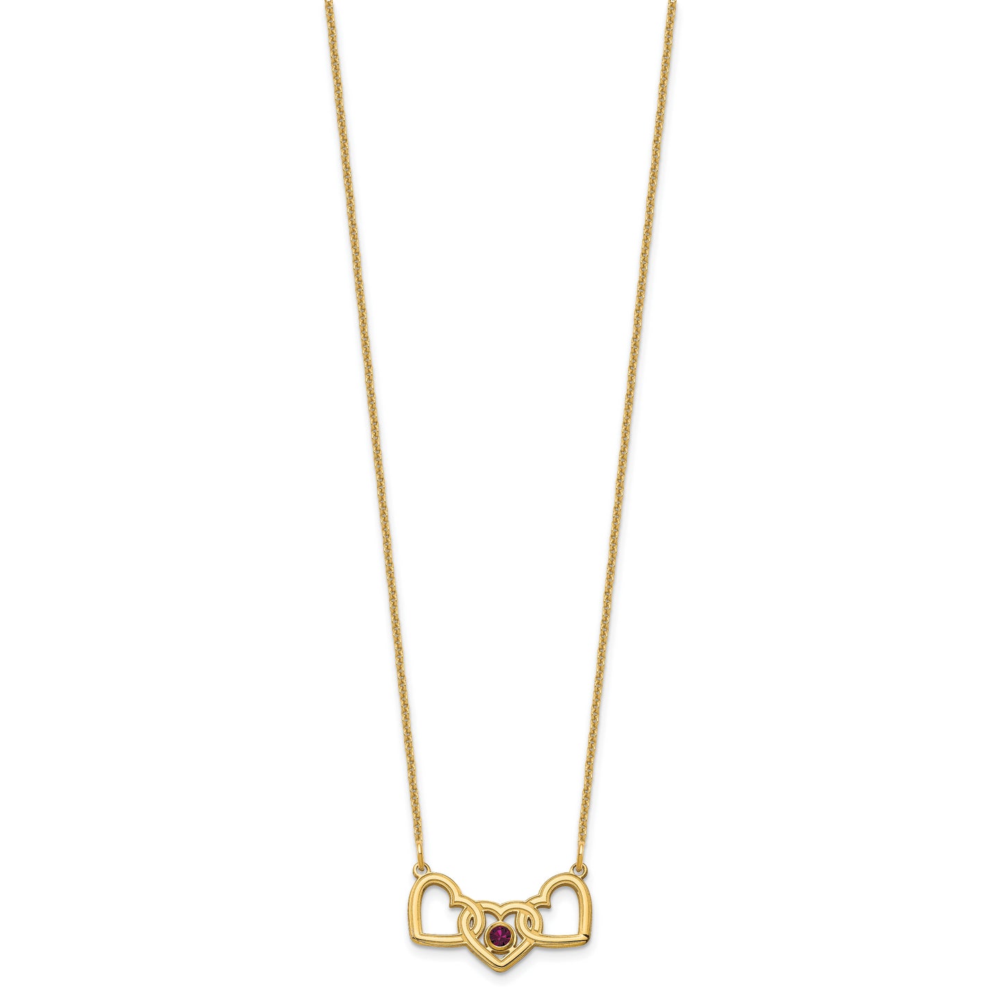 14K Yellow Gold 3 Hearts 1 Birthstone w/ 14k Bezel Necklace