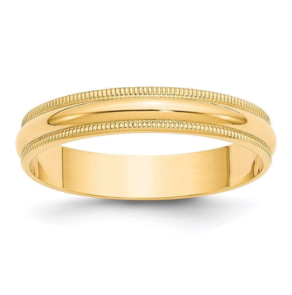 14k Yellow Gold 4mm Lightweight Milgrain Half Round Wedding Band Size 5