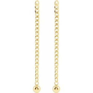 14K Yellow Gold 5Mm Curb Chain Dangle Bead Earrings