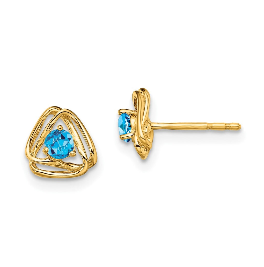 14K Yellow Gold Blue Topaz Post Earrings