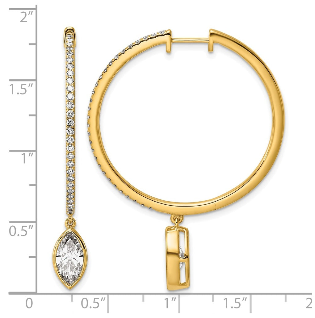 14K Yellow Gold Certified Marquise Bezel Dangle Lab Grown Diamond VS+ F+ Hoop Earrings