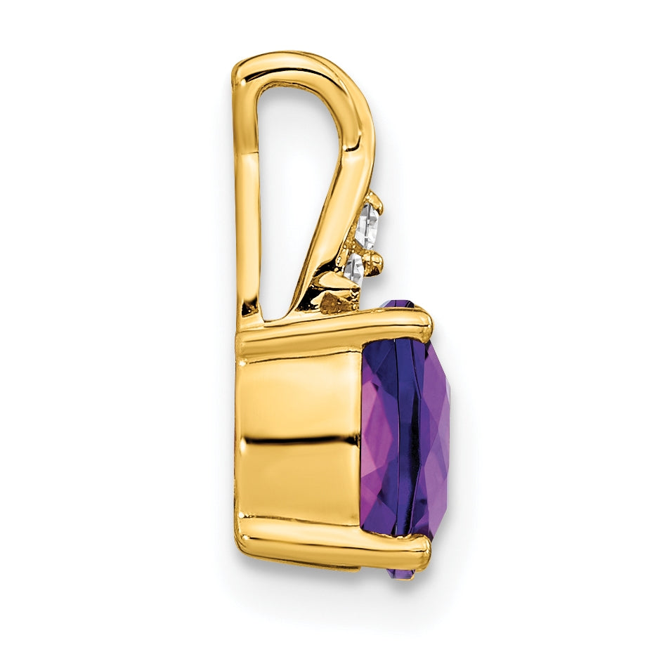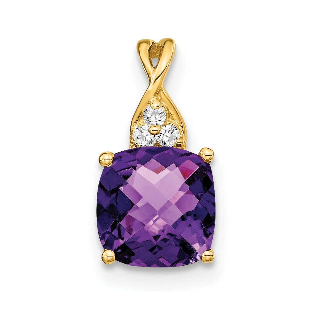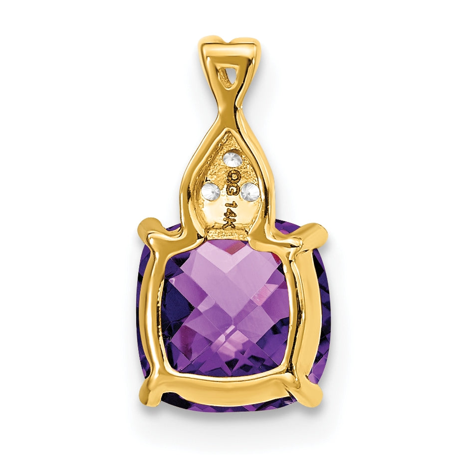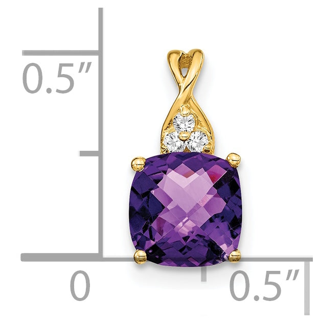 14K Yellow Gold Checkerboard Amethyst and Diamond Pendant