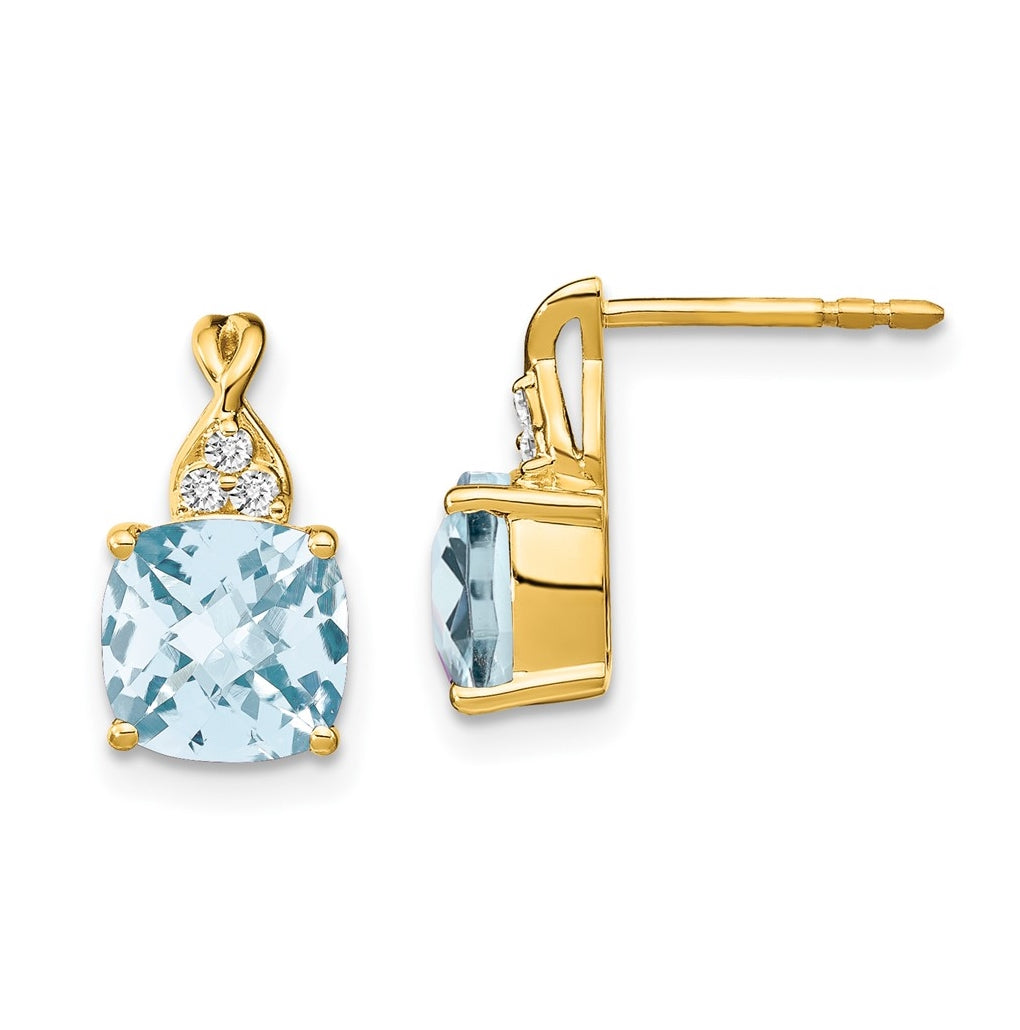 14K Yellow Gold Checkerboard Aquamarine and Diamond Earrings
