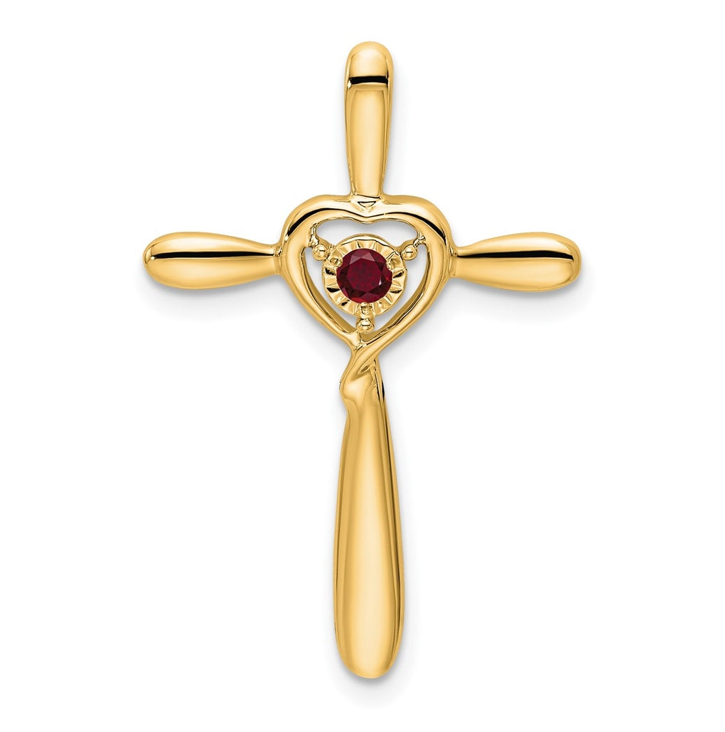 14K Yellow Gold Created Ruby Cross w/Heart Chain Slide