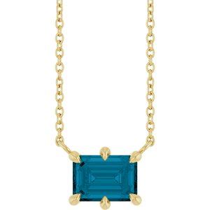 14K Yellow Gold Emerald 7 X 5 Mm Natural London Blue Topaz 6-Prong Solitaire Necklace, Length: 18 In