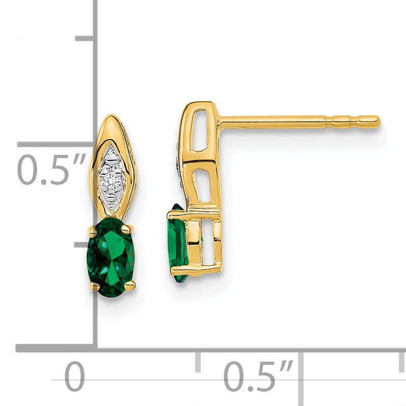 14K Yellow Gold Emerald and Diamond Post Earrings