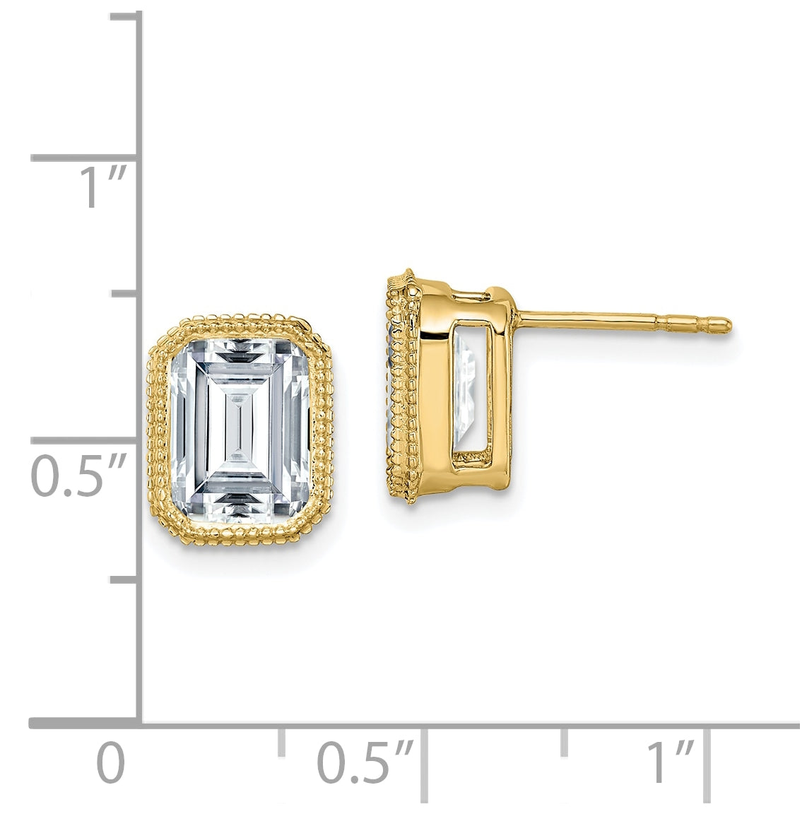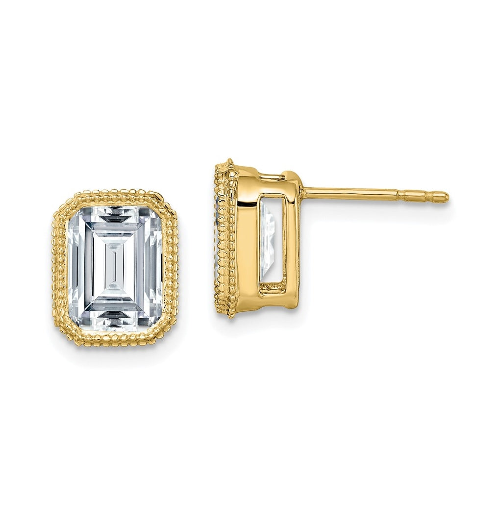 14k Yellow Gold Emerald Beaded Bezel Earring G H I True Light Moissanite, 10.1mm