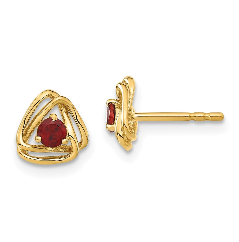 14K Yellow Gold Garnet Post Earrings