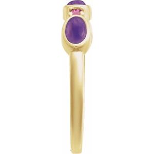 - Description: Natural Amethyst Cabochon And Natural Pink Tourmaline Stackable Ring