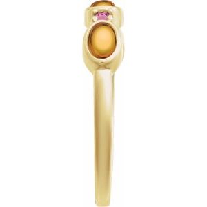 - Description: Natural Citrine Cabochon And Natural Pink Tourmaline Stackable Ring