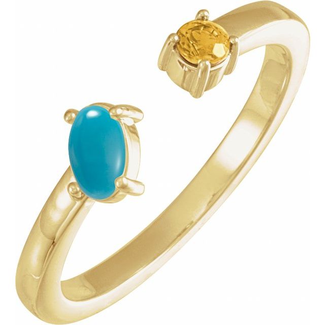14K Yellow Gold Oval 5 X 3 Mm Polished Natural Turquoise And Natural Citrine 2-Stone Negative Space Ring, Size 7