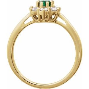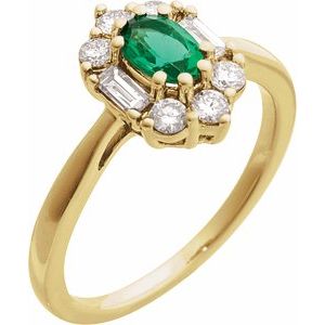 14K Yellow Gold Oval 6 X 4 Mm Natural Diamond Polished Lab-Grown Emerald And 3/8 Ctw Natural Diamond Ring Size 7