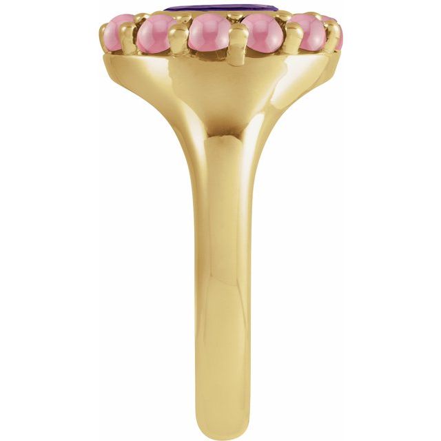 14K Yellow Gold Oval 7 X 5 Mm Polished Natural Amethyst And Cabochon Natural Rhodolite Garnet Halo-Style Ring, Size 7