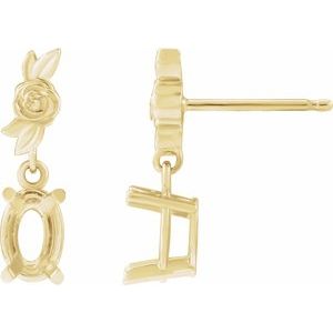 14K Yellow Gold Oval 8 X 6 Mm Floral Dangle Earring Mounting