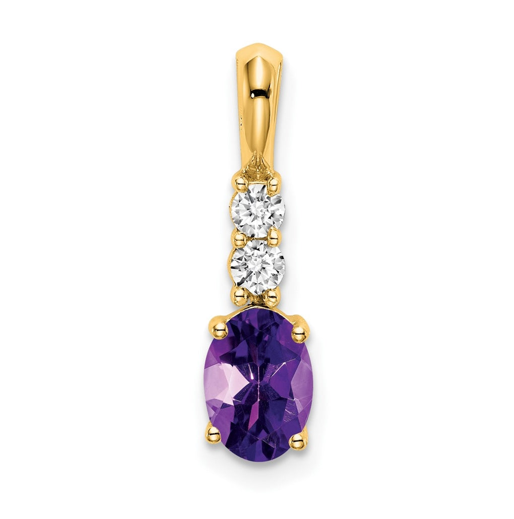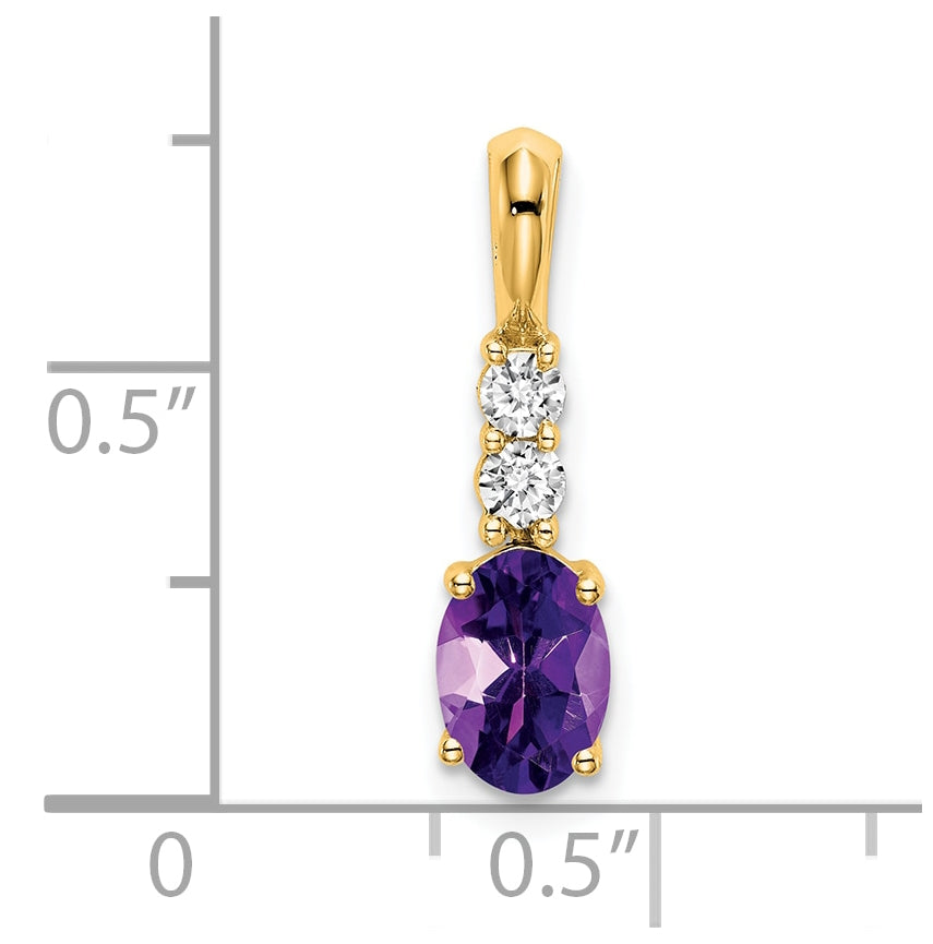 14K Yellow Gold Oval Amethyst/Diamond Pendant