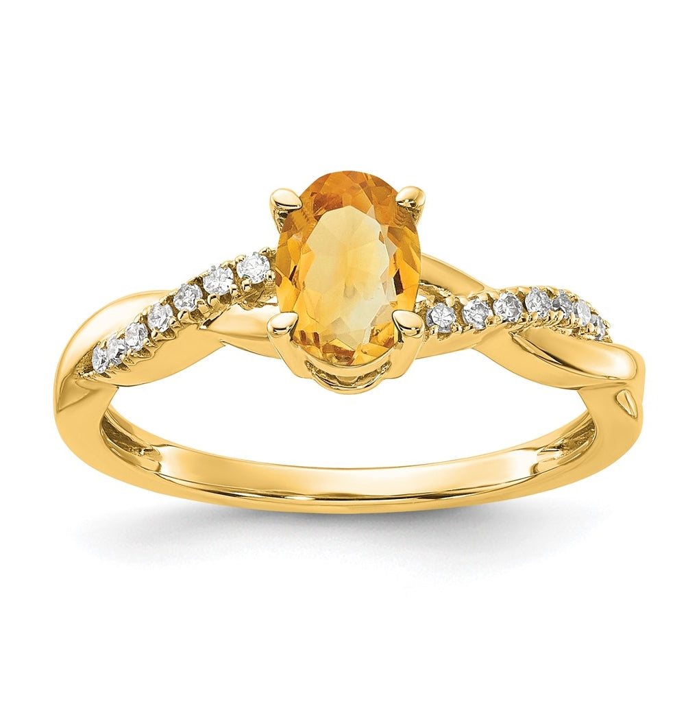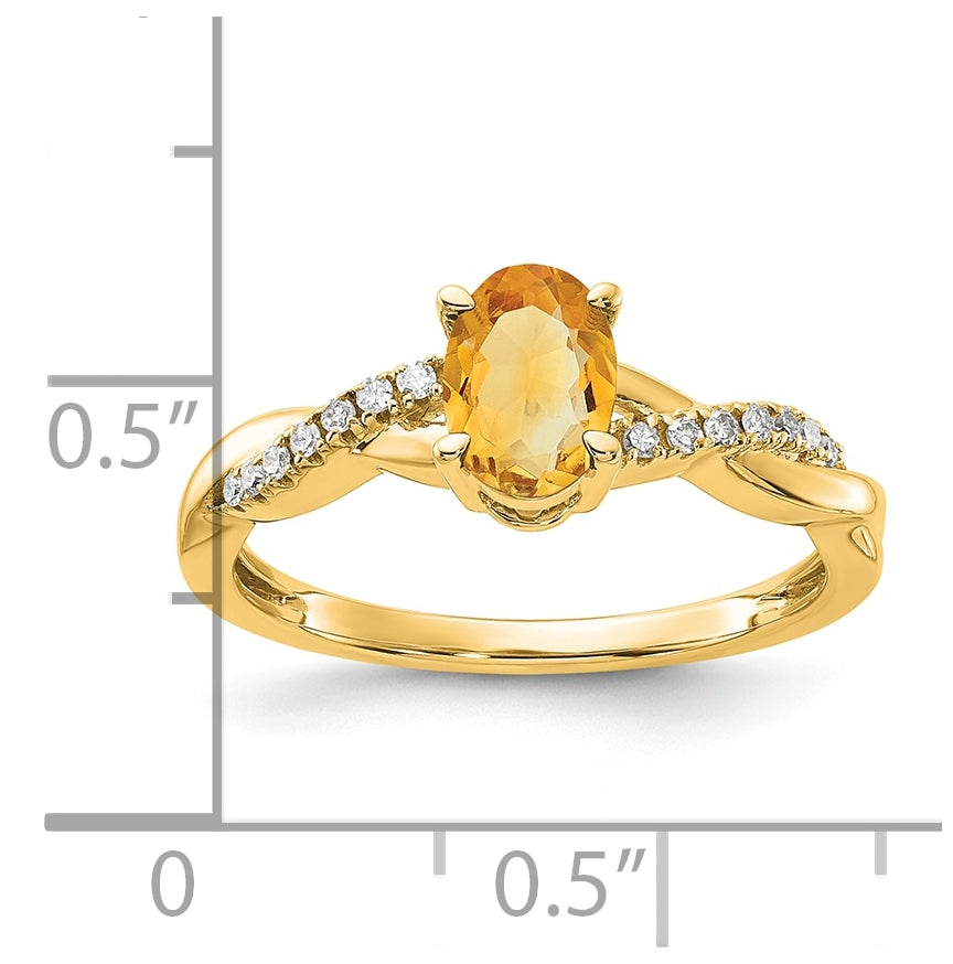14K Yellow Gold Oval Citrine and Diamond Ring, Size 7