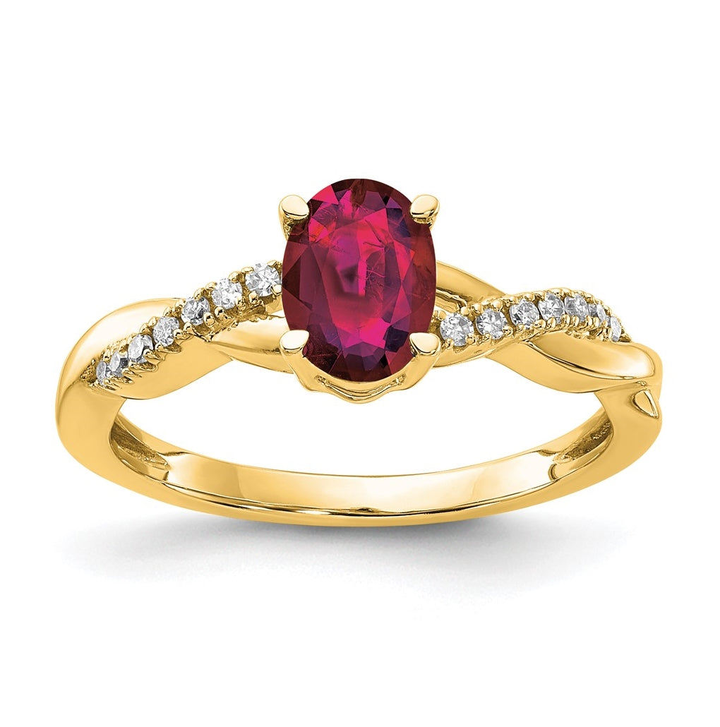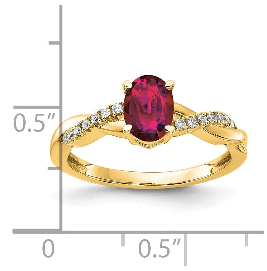14K Yellow Gold Oval Created Ruby and Diamond Ring, Size 7
