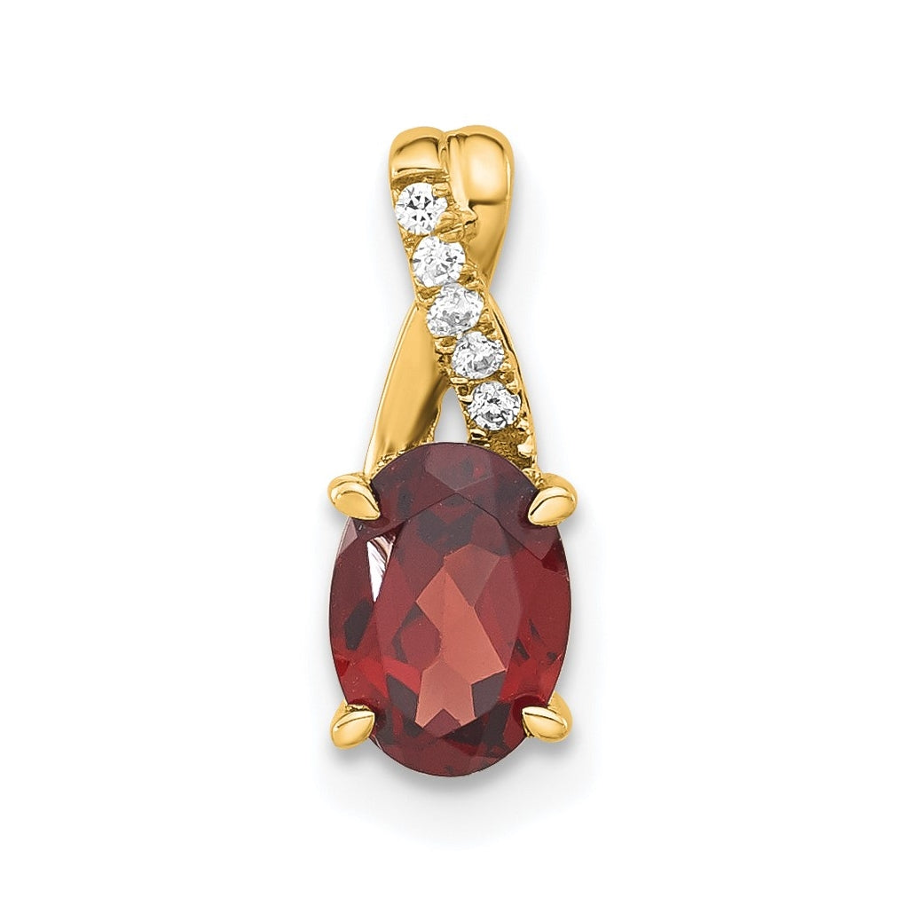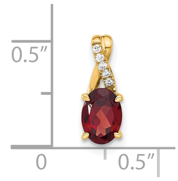 14K Yellow Gold Oval Garnet & Diamond Pendant