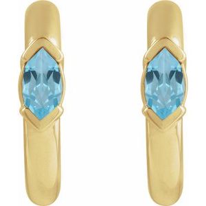 14K Yellow Gold Pair Marquise Shape 4 X 2Mm :: 0 Ct Natural Sky Blue Topaz Hoop Earrings, Length: 10 Mm, Thickness: 2 Mm