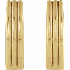 14K Yellow Gold Pair Ribbed Huggie Earrings, Length: 10 Mm, Thickness: 2.4 Mm