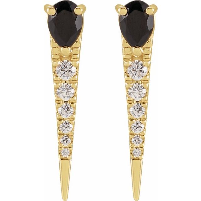 14K Yellow Gold Pear 4 X 3 Mm Friction Back Polished Natural Black Onyx And 1/8 Ctw Natural Diamond Spike Earrings