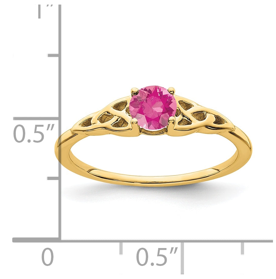 14K Yellow Gold Pink Tourmaline Celtic Knot Ring, Size 6