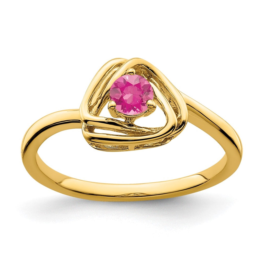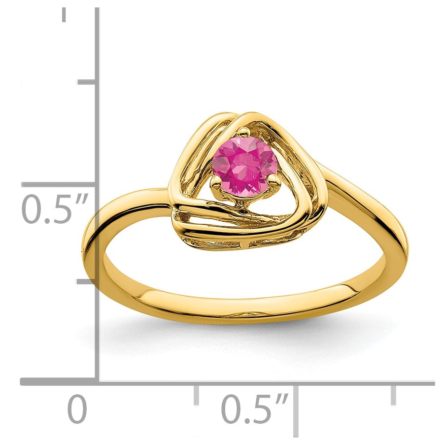 14K Yellow Gold Pink Tourmaline Triangle Ring, Size 6
