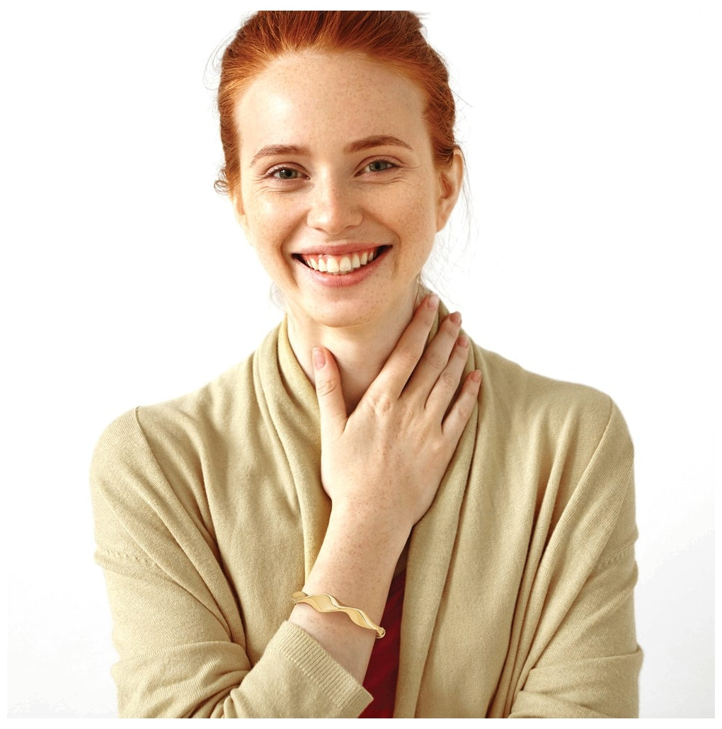 14k Yellow Gold Polished Wavy Hinged Bangle