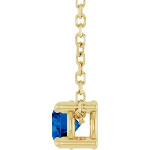 14K Yellow Gold Round 4 Mm Lab-Grown Blue Sapphire Solitaire Slide Necklace, Length: 18 In