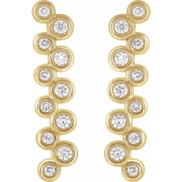 14K Yellow Gold Round Friction Back Polished 1/3 Ctw Natural Diamond Bezel-Set Drop Earrings